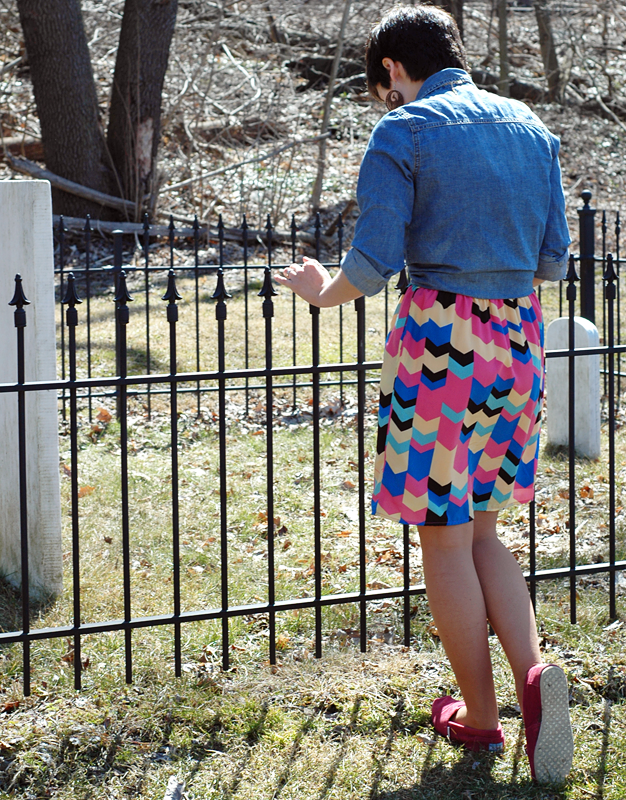 Outfit-wise, I've been seeing people tying these shirts at the waist recently and really wanted to try it out. I got the chance today when I put on my geometric shapes dress and really wanted to pair it casually with this shirt. It worked! Love it! I paired it with my flower necklace, wood bird earrings, a pale pink bracelet, and my TOMS pomegranate purple shoes (my favorite food is a pomegranate -- which is why I have these)!